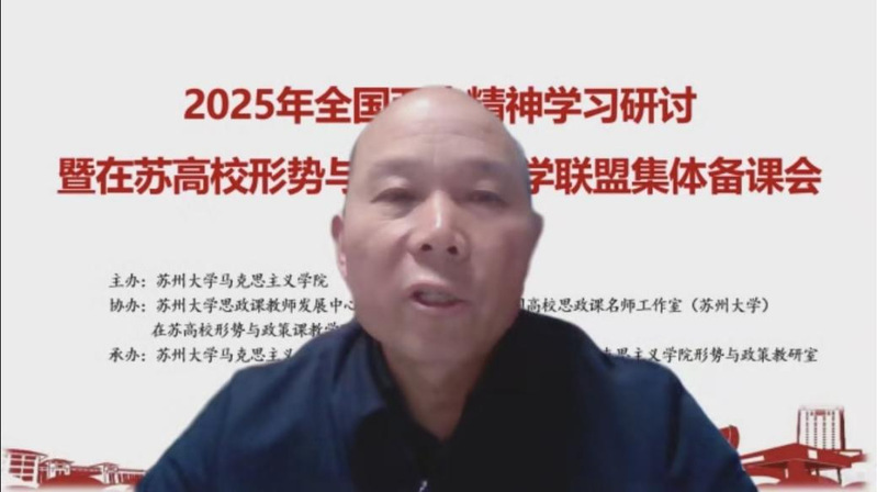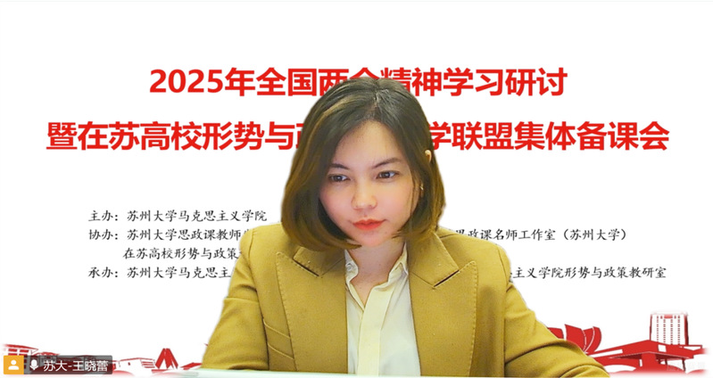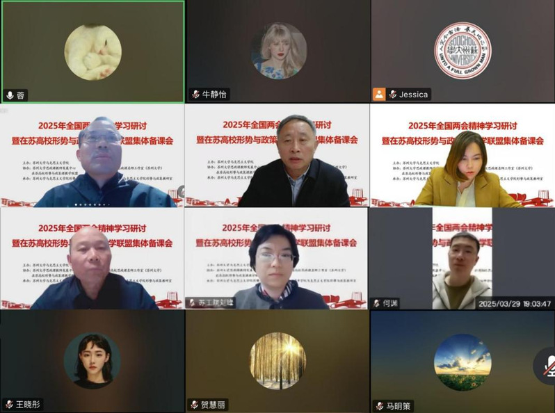 为深入学习贯彻2025年全国两会精神,进一步提升高校“形势与政策”课教学质量,2025年3月29日,由探花 主办,探花 思政课教师发展中心、全国高校思政课名师工作室(探花 )、在苏高校形势与政策课教学联盟协办,探花 形势与政策教研室、苏州城市探花 探花 形势与政策教研室承办的“2025年全国两会精神学习研讨暨在苏高校形势与政策课教学联盟集体备课会”在线成功举行。来自探花 、苏州城市探花 、苏州科技大学等在苏二十余所高校的课程负责人、任课教师近80人参加会议。会议由探花 形势与政策教研室主任王晓蕾主持。