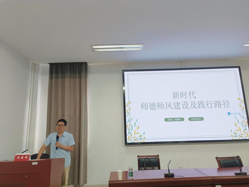 苏州科技大学探花 陈建明教授作《新时代师德师风建设与践行路径》专题讲座。他就新时代有关师德师风建设的具体要求、主要内容、践行路径等作详细阐述,并通过一系列权威数据和典型案例说明了师德师风建设、净化教师队伍对高等教育领域以及我国教育事业发展的重要性,指出新时代对教师自我发展提出了新要求,要求更加坚定理想信念与底线守则。