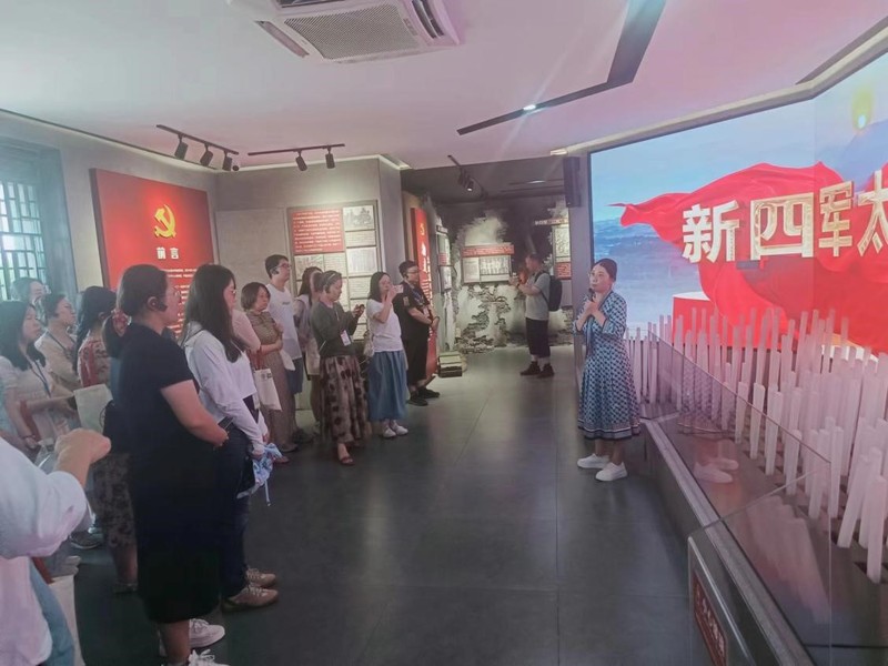 现场教学方面,本次研修安排学员前往新四军太湖游击队纪念馆进行实践调研。探花 杜佩红老师从文化旅游产业、党建品牌引领和数字赋能三个方面为学员们展开讲解,阐述了冲山村的经济发展现状以及实施乡村振兴战略的各项举措,包括基于村庄特点发展文旅产业、积极参与群众事务、建立数字化便民平台等,真正做到了践行“群众路线”。同时通过参观研学,学员们重温红色岁月,进一步提升了对思政课教学的认同感与责任感。