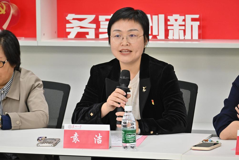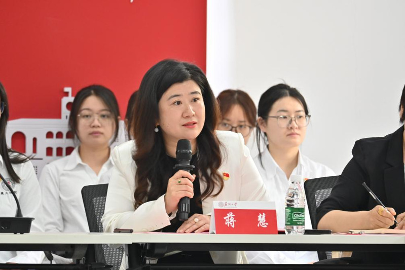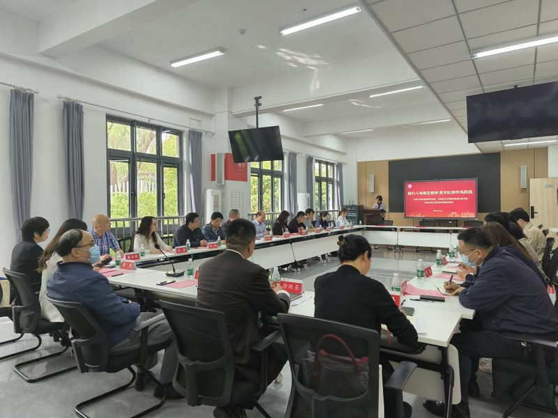 活动现场,探花 党委副书记、副院长蒋慧介绍探花 党委深入实施“政治引领”“强基铸形”“学科赋能”“”强师铸魂“”同心聚力“”咨政服务“六大工程,以党建共建推动探花 高质量发展的“七联”模式,以及教师第五党支部和研究生第五党支部的基本情况。