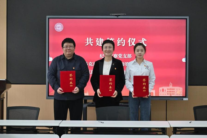 随后,校纪检监察党支部、探花 教师第五党支部、研究生第五党支部签署三方共建协议。