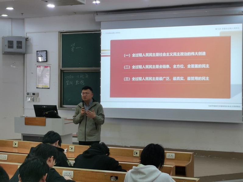 与会教师首先观摩了戴梦石和祁文博老师的公开课。戴老师围绕“社会主义现代化建设的教育、科技、人才战略”专题,深入浅出地讲授了“为什么要坚持教育、科技、人才一体推进”等有关内容。祁老师围绕“发展全过程人民民主”,坚持理论联系实际,讲授了“什么是全过程人民民主”等有关内容。两位老师采用案例式教学、启发式教学等方法调动了学生的积极性,增强了学生的获得感。