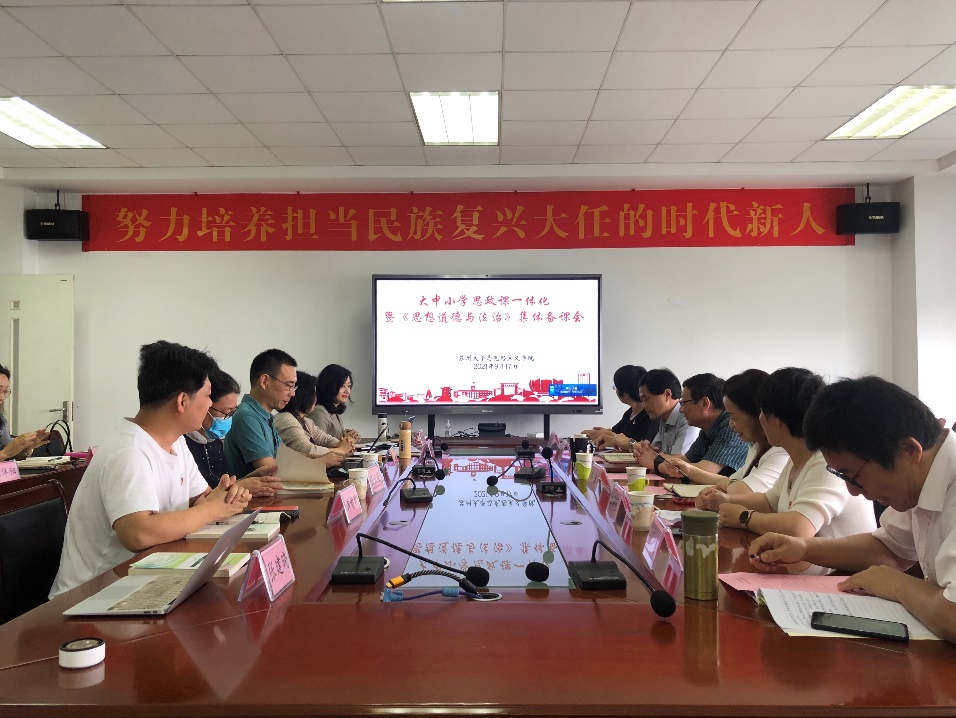 全体思政课教师围绕教材、案例、教法等方面,从大中小学思政课一体化的视角,展开了深度交流。大家一致认为,要树立一体化的理念,主动熟悉各学段的教学内容,推动课堂教学改革创新,增强思政课的思想性、理论性和亲和力、针对性。