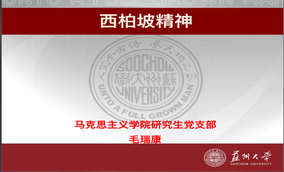 宣传委员毛瑞康领学“西柏坡精神”,他带领大家从西柏坡的史实学起,回顾了我们党在西柏坡期间的革命建设工作。他强调谦虚谨慎、艰苦奋斗是永不过时必须始终坚持的精神,作为党员要严格要求自己,要修身正己,扎牢作风问题的“篱笆墙”。19级党小组组长王东旭领学“长征精神”,他带领大家回顾了二万五千里长征的艰苦岁月,体会革命先烈们坚定、勇敢的革命精神并鼓励大家继续坚定理想信念,在新时代继续发扬艰苦奋斗、不畏艰苦、严守纪律的精神。19级党小组党员代表张云婷领学“红船精神”。红船精神的内涵包含首创精神、奋斗精神和奉献精神,她提到,红船精神是中国革命的精神之源,是党的先进性之源,具有超越时空的恒久价值和旺盛生命力,新时代建设中国特色社会主义必须发扬红船精神。