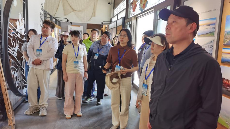 在扬州市邗江区方巷镇沿湖村,师生党员在讲解员的带领下参观了以“渔”为主题的渔文化博物馆、渔家学堂、渔家书房等场馆,深切感受到沿湖村退渔还湖生态修复工程为当地村民生活带来的可喜变化。该村践行“绿水青山就是金山银山”理念,通过发展乡村旅游业,走出了一条生态文旅融合的乡村振兴实践路径。