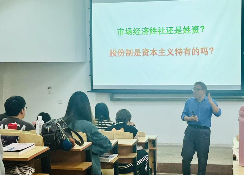 姜明老师以《毛泽东思想和中国特色社会主义理论体系概论》教材第六章第一节“邓小平理论首要的基本的理论问题”为主要内容展开授课。姜明老师授课内容丰富,条理清晰,注重教学内容的学理性,理论联系实际,通过问题链启发学生思考,取得了较好的教学效果。