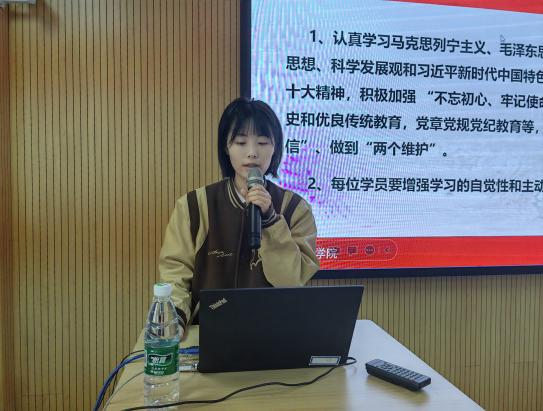 学生党总支书记金鑫在总结讲话时提出,希望各位学员明确入党初心,认真学习党的基本知识和最新理论,提高思想觉悟,增强党性修养,在平时的学习、工作各方面时刻严格要求自己,努力做到思想与行动一致,向党组织靠拢。