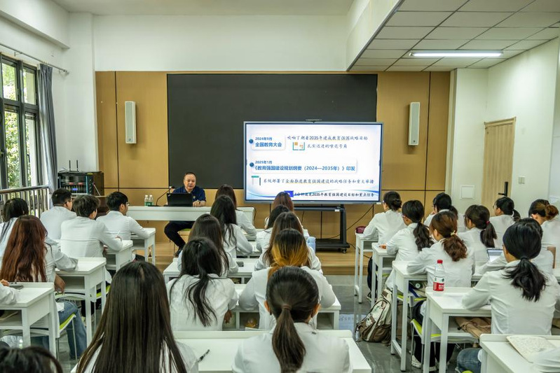 讲座伊始,姚建林副校长以《教育强国建设规划纲要(2024—2035年)》为切入点,从理论与实践两个维度,深刻剖析了建设教育强国对推动国家高质量发展的重要战略意义。他强调,在世界新一轮科技革命和产业变革加速演进的背景下,教育强国建设不仅是培养创新人才的根本途径,更是实现高水平科技自立自强、推进社会全面进步的核心动力。