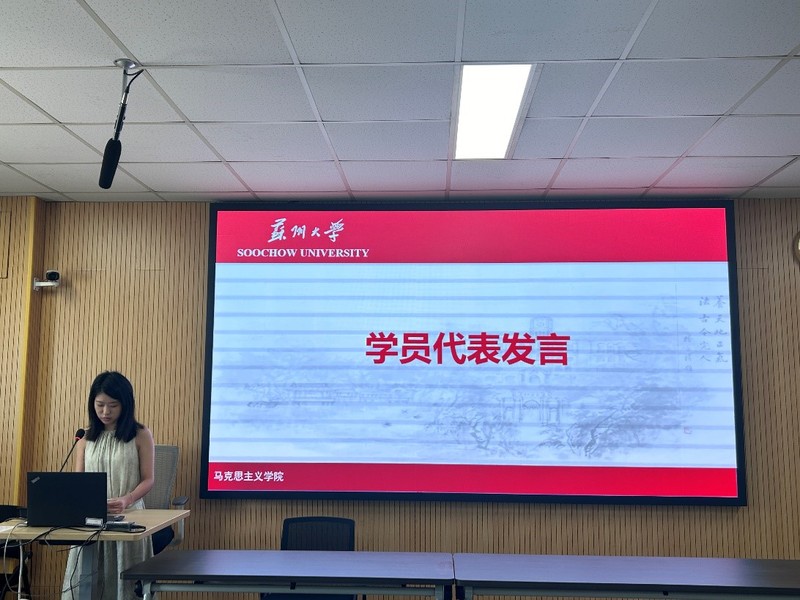 2022级硕士研究生欧铭勤作为学员代表发言,她表示将在本次培训中会努力做到以下四点:一是努力学习,坚定自己的理想信念;二是端正入党动机,为早日成为名副其实的党员而努力;三是保持认真的学习态度,遵守纪律;四是做到学习与实践相结合,牢记党的宗旨,贡献自身的青春力量。