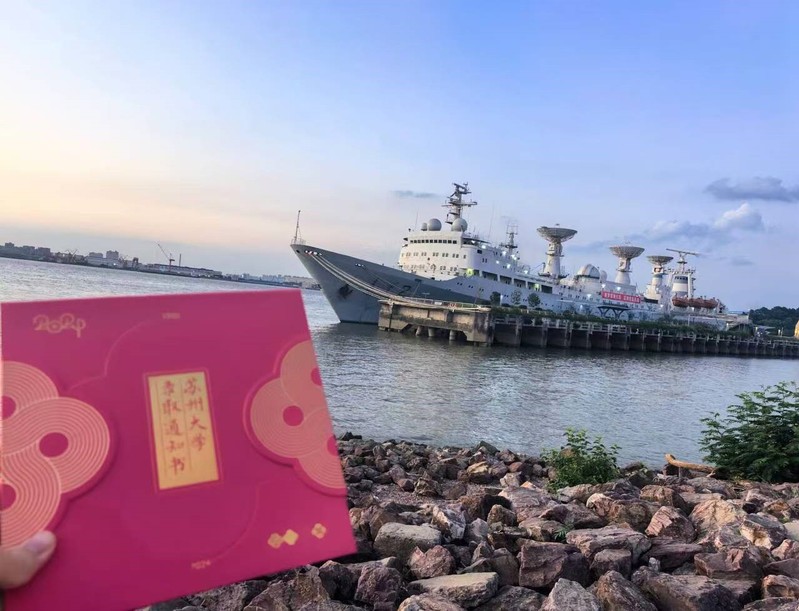 宋汶萱:我的家乡是江阴,地域原属吴地延陵,晋朝始置暨阳县,因地处“大江之阴”而得名,正所谓山北水南为阴,江阴位于长江之南,与晋江市隔岸相望,连接两地的便是著名的长江大桥,位于长江水道之上,是中国“九五”期间重点建设项目,是中国“两纵两横”公路主骨架中同江至三亚国道主干线及北京至上海国道主干线的跨江“咽喉”工程。录取通知书背后的,正是远望号与长江大桥。江阴又名要塞,是一个极具战略军事意义的地方,故而为航空器保驾护航的远望号任务往往也有江阴的参与。