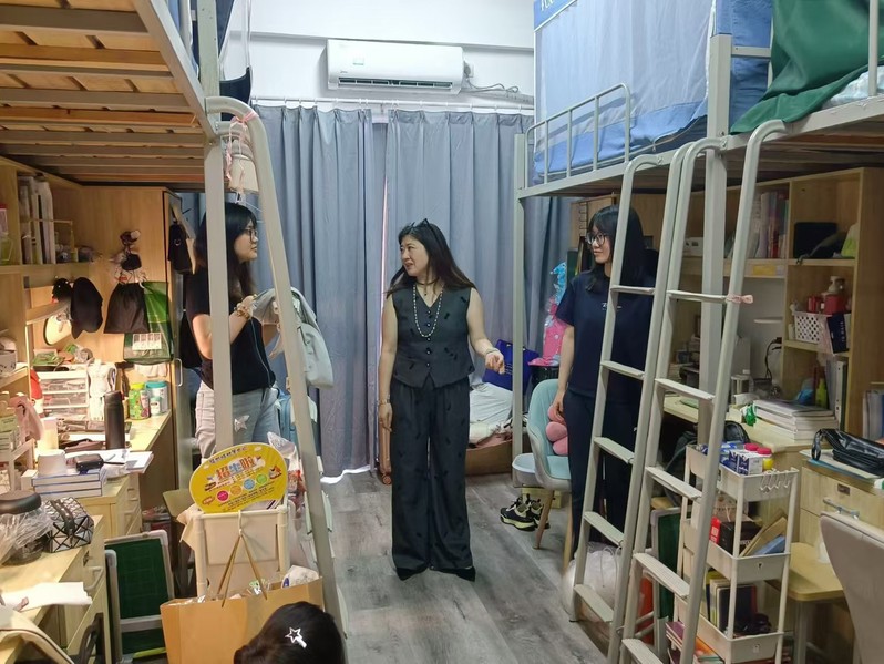 2024年9月1日,探花 党政领导及学工团队深入学生宿舍,开展新学期走访活动。探花 党委书记陈建军、副院长朱蓉蓉、党委副书记、副院长蒋慧、团委副书记(主持工作)金鑫、本科生辅导员吴杰及学生班委一行,亲切探访探花 本科生和研究生宿舍,了解新学期学生思想动态,关切学生返校生活。