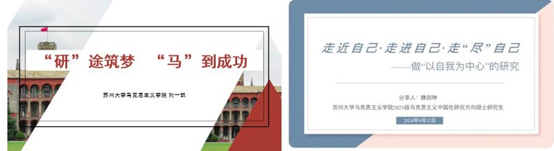 刘一凯以“‘研’途筑梦,‘马’到成功”为题进行分享,他从培养科研基本功、论文写作技巧、投稿经验等进行了详细阐述,勉励同学们在科研之路上保持平和心态,勇于探索,勤于思考,不断提升自我。魏剑琳以“走近自己·走进自己·走‘尽’自己”为题进行分享,她指出科研的起点是问题意识,要以“话题-问题-难题”为线索确定方向,鼓励同学们运用朋辈资源,参与各类科研竞赛、学术论坛及社会实践,积极拓宽视野。在互动环节中,2024级硕士研究生王雨琪、牛静怡、李静雨分别聚焦“发现科研问题”“寻找研究方向”“处理逻辑关系”等方面提问,刘一凯和魏剑琳一一给予耐心细致的解答并给出了建议。
