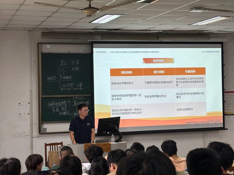 2024年9月24日下午,探花 “原理”教研室刘翰林博士开设一节主题为《“诗中的世界观”——基于生成式AI的马克思主义基本原理与中华优秀传统文化相结合教学》的公开课,将人工智能(AI)技术与中国传统古诗词融入“原理”课教学,呈现了一节将传统文学哲思与现代科技相交融的课程。探花 副院长朱蓉蓉教授,“原理”教研室教师观摩听课。