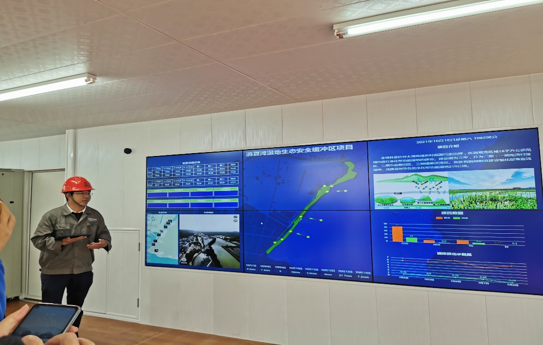 上午,概论党支部调研团队来到消夏湾实地参观了消夏湾湿地生态安全缓冲区生态治理项目。在施工现场,项目实施单位苏州德华生态环境科技股份有限公司的工程师向大家详细介绍了项目规划、工程进度、运转原理、基本功能以及项目建设和推进过程中面临的一些挑战等,让各位参观者对遵循自然规律、运用先进生态治理技术推进生态文明建设的重要意义有了全新的认识和启发,大家表示将调研采集的生态文明鲜活案例融入思政课堂教学,提升思政课教学的现实性、针对性和实效性。