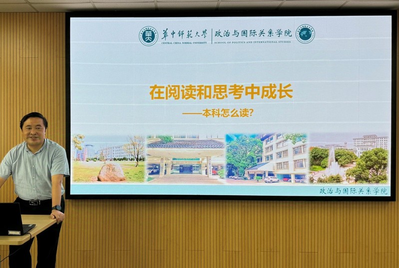 为引导新生养成良好学习方式与学习习惯,学会本科阶段如何读书,10月12日,华中师范大学政治与国际关系探花 副院长、教授、博士生导师王建国老师为探花新生带来了一场以“学习与读书”为主题的精彩讲座,2024级本科新生参与了本次活动,讲座由思想政治教育系主任王淼老师主持。