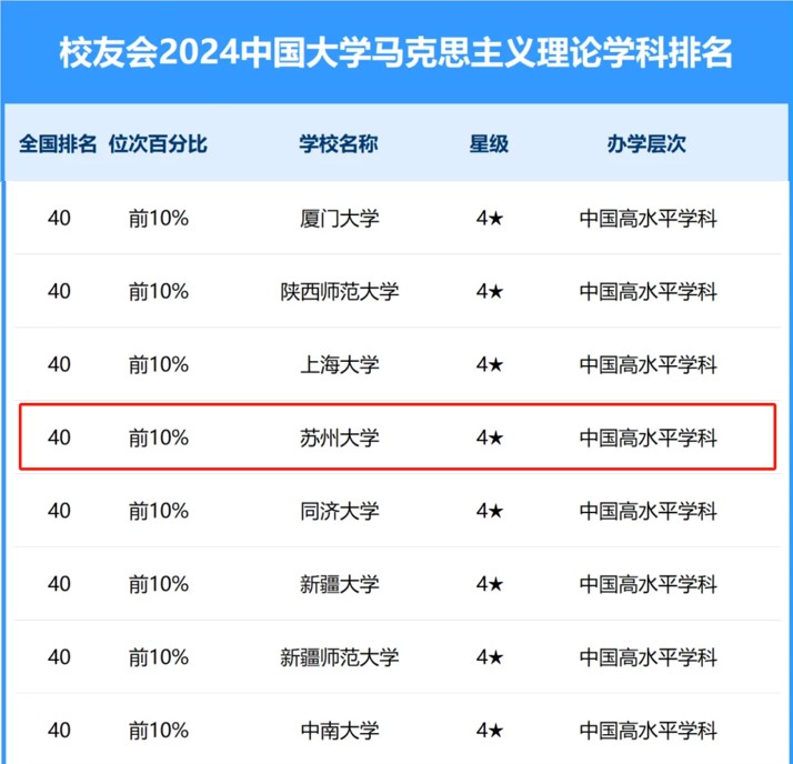 马克思主义理论学科进入校友会2024中国大学一流学科排行榜前10%