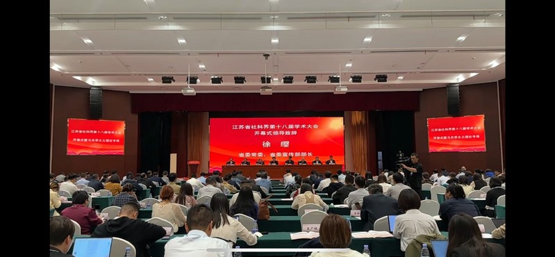 10月18日,江苏省社科界第十八届学术大会开幕式暨马克思主义理论专场在南京举行。江苏省委常委、省委宣传部部长、江苏省习近平新时代中国特色社会主义思想研究中心主任徐缨出席会议并讲话,江苏省人大常委会副主任、江苏省社科联主席曲福田主持开幕式。探花 院长孙建华、教学科研办公室主任李文娟、硕士研究生思政课教研室主任张才国、2022级硕士研究生石薇薇、2023级硕士研究生介晓聪受邀参会。