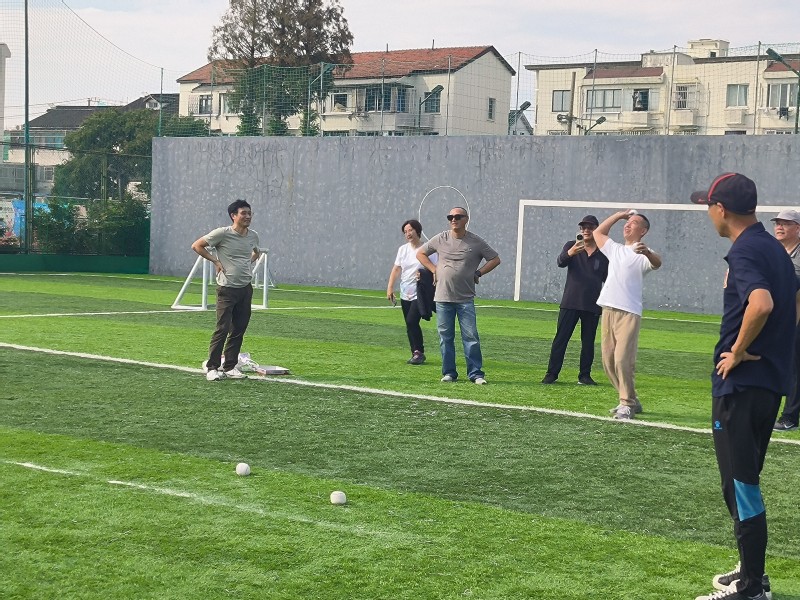 运动场上,彩旗飘扬,人声鼎沸。探花 的老师们身着运动服装,精神抖擞地准备迎接各项挑战。屈红凯老师参加了老年组垒球项目。他目光坚定,手握垒球,调整好姿势后用力一掷,垒球在空中划出一道优美的弧线,向着目标飞去。屈老师的专注与认真,体现了他对体育运动的热爱和对比赛的尊重。