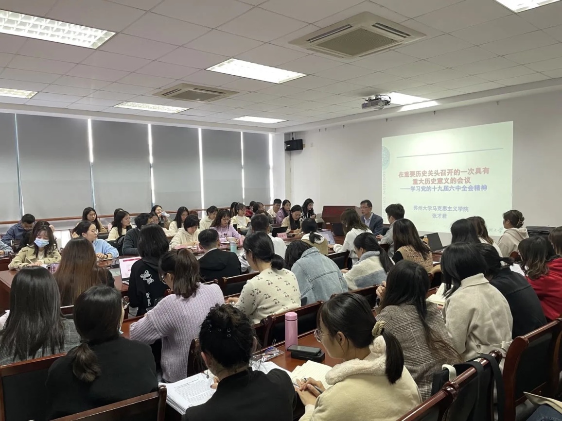 张才君老师以“在重要历史关头召开的一次具有重大历史意义的会议——学习党的十九届六中全会精神”为题上了党课。张老师介绍了党的十九届六中全会召开的现实背景,从“三个需要”的角度介绍党的十九届六中全会总结党百年奋斗的重大成就和历史经验的重大意义,从五个方面阐述了总结百年奋斗的重大意义,强调了“两个确立”的决定性意义,解读了习近平新时代中国特色社会主义思想在新时代的新拓展和新发展,从“四个必须”概括了新时代加强党的建设的重要性。最后,张老师还提出几点希望与师生共勉,即要把学习《中共中央关于党的百年奋斗重大成就和历史经验的决议》与习近平总书记在党史学习教育动员大会上的重要讲话和“七一”重要讲话相结合,增强政治自觉,牢记初心使命,坚决做到“两个维护”;要在百年党史的学习中不断加强自我修养,学习党在百年奋斗中形成的思想方法、工作方法和领导方法,不断提高理论水平和工作能力;要把党史学习教育转化为现实的生产力,做到知行合一、学以致用,结合实践,推动工作,以优异的成绩迎接党的二十大的胜利召开。