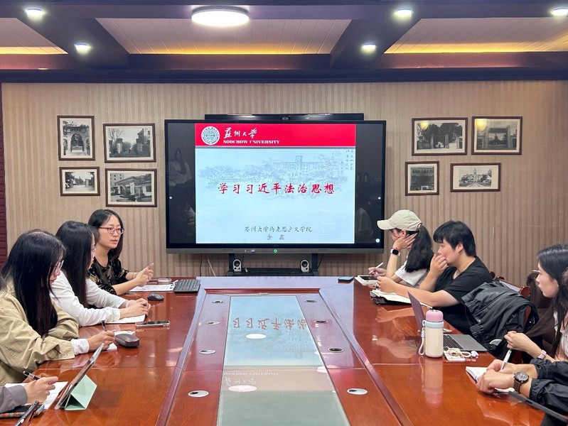 培训课的最后,金老师和同学们分享总结凝练学习习近平法治思想的“八大金句”,通过组织对热点话题的讨论,启发学员们进一步思考,呼吁同学们要做知法、懂法、学法、守法的新时代青年。