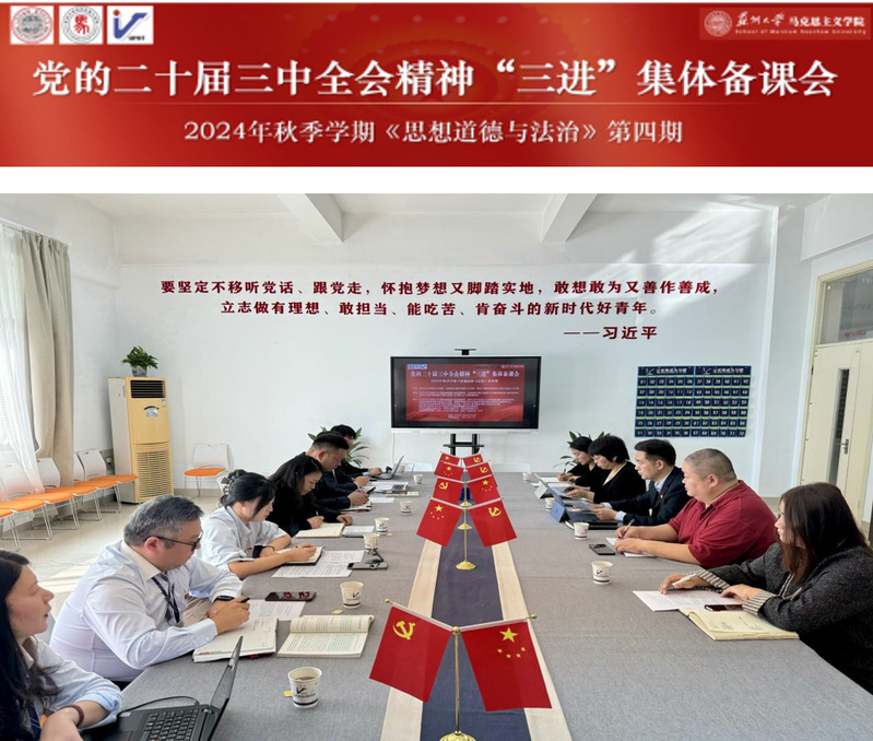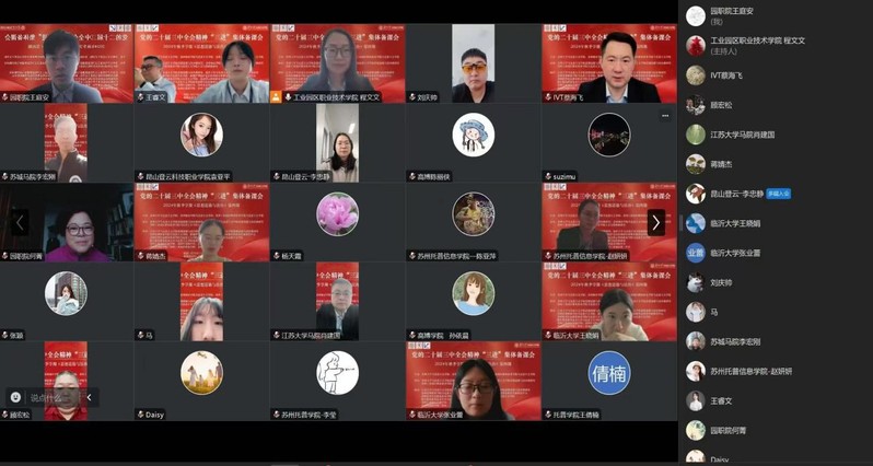 为积极推进党的二十届三中全会精神“三进”暨大中小学思政课一体化建设工作,10月25日上午,由探花 、苏州城市探花 探花 、苏州工业园区职业技术探花 探花 主办,探花 思想道德与法治教研室、苏州城市探花 探花 思想道德与法治教研室、苏州工业园区职业技术探花 探花 人文与思政教研室承办,江苏大学探花 思想道德与法治教研室、临沂大学探花 思想道德与法治教研室、新疆伊犁哈萨克自治州霍尔果斯市教育高质量发展研究中心、浙江机电职业技术大学探花 、苏州高博职业探花 探花 、苏州托普信息职业技术探花 探花 、昆山登云科技职业探花 探花 、苏州工业园区星湖学校、苏州叶圣陶中学、苏州北美国际中学、苏州外国语学校、苏州工业园区莲花学校、苏州工业园区第一中学协办的集体备课会成功举办。16所学校的“思想道德与法治”课专兼职老师参加备课会,探花 副院长朱蓉蓉、探花 思想道德与法治教研室主任顾宏松、苏州工业园区职业技术探花 党委副书记、副校长、探花 院长蔡海飞、苏州工业园区职业技术探花 学生工作部主任、探花 副院长陈刚、苏州工业园区职业技术探花 人文与国际探花 院长陈颖丽、苏州工业园区第一中学德育处余佩玲出席线下会议,会议由苏州工业园区职业技术探花 探花 副院长程文文主持。