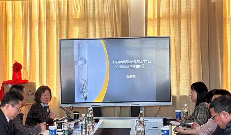 舒兰兰主任立足于高中与大学的学段衔接展开以“高中思想政治课与大学‘概论’课教学衔接研究”为主题的分享。舒主任围绕高中思政课与大学“概论”课教学衔接的现存问题和衔接路径两方面进行交流。认为当前高中与大学衔接存在五个方面问题,即一是教师未有效处理高中思政课与大学“概述”课的教学衔接问题;二是教学目标缺乏整体性与层次性;三是教学内容存在重复赘述,渐进性不强;四是教学方法千篇一律,未能突出学段差;最后是教学评价各自独立,连贯性、动态性差的问题。针对这几个方面的问题,舒老师认为要通过教师层面转变教学观念,提升自身教学衔接素质;优化课堂教学体系,提高教学衔接的有效性;推动教学的“点、线、面”结合等办法来寻求解决路径。