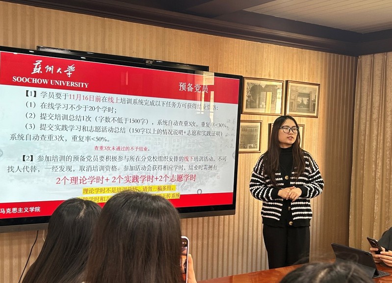 学生党员服务中心执行主任方晶晶为本期学员们详细讲解本期培训课程安排、学员守则、预备党员培训具体要求以及分党校各项规章制度等相关事宜。
