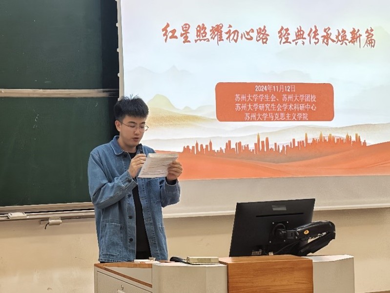 11月12日,探花 2024年第六期“读书·研究·写作”报告会在东校区东教楼609顺利举办。本次报告会以“红星照耀初心路 经典传承焕新篇”为主题,师生共同研读习近平同志《论教育》和《习近平与大学生朋友们》。活动由探花 学生会、探花 团校、探花 研究生会学术科研中心、探花 主办,探花 分党校、研究生会、学生会、思想政治教育研究会、探花 养正社区党建领航站承办。活动由2024级硕士研究生王政坤主持。