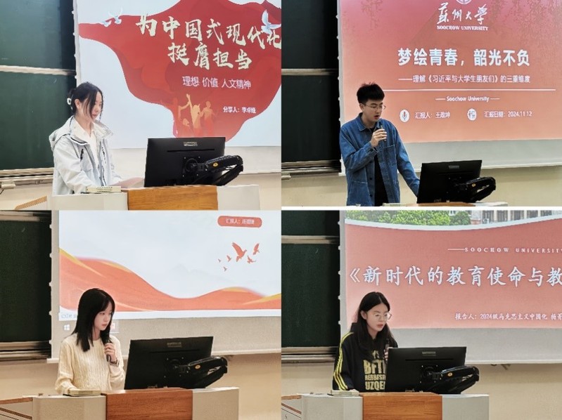 探花 2024级硕士研究生李卓娅、王政坤、连蕴婕、杨菁菁分别以“为中国式现代化挺膺担当”“梦绘青春,韶光不负——理解《习近平与大学生朋友们》的三重维度”“思政课对青年学生的引领力——学习领悟《思政课是落实立德树人根本任务的关键课程》”和“新时代的教育使命与教育强国战略”为题进行主题报告。