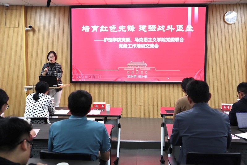 为进一步推进基层党组织标准化、规范化建设,提升基层党务工作者的综合素质和业务能力,推动党建工作提质增效,赋能立德树人根本任务落实,11月14日下午,护理探花 党委、探花 党委在天赐庄校区东区东教楼516室联合开展“培育红色先锋 建强战斗堡垒”党务工作培训交流会。护理探花 党委书记刘慧,探花 党委统战委员、副院长朱蓉蓉,党委组织部党员教育管理科科长吴常歌,护理探花 教工党支部、探花 教师第四党支部全体党员,护理探花 、探花 各研究生党支部支委参加培训交流会。会议由探花 党委专职组织员王静主持。