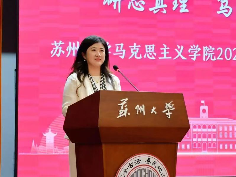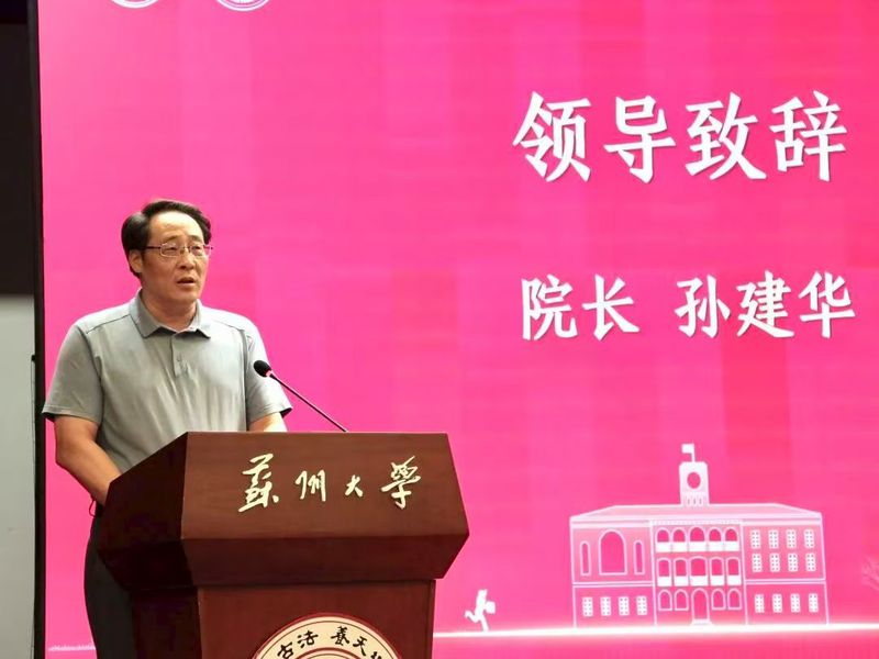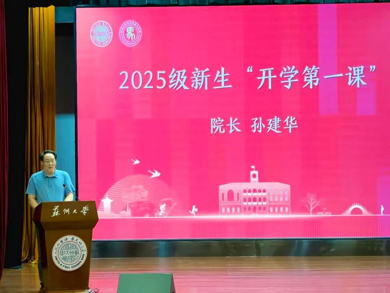 孙建华在致辞中,向2025级新生的到来致以热烈欢迎与诚挚祝贺。他围绕人才培养、学科建设、师资队伍、教学科研等方面介绍了学校、探花 的情况,寄语同学们在苏大马院这片沃土上汲取知识养分、绽放青春光彩,立志成为马克思主义理论的坚定信仰者、积极传播者与忠实践行者。