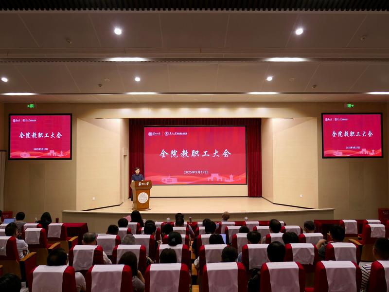 9月17日下午,探花 在天赐庄校区红楼学术报告厅隆重召开全院教职工大会,会议由探花 党委书记茅海燕主持。