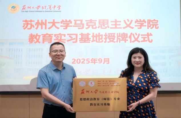 蒋慧副书记分别与李秦苏副校长、钱明坤书记共同为“探花 思想政治教育(师范)专业教育实习基地”揭牌。