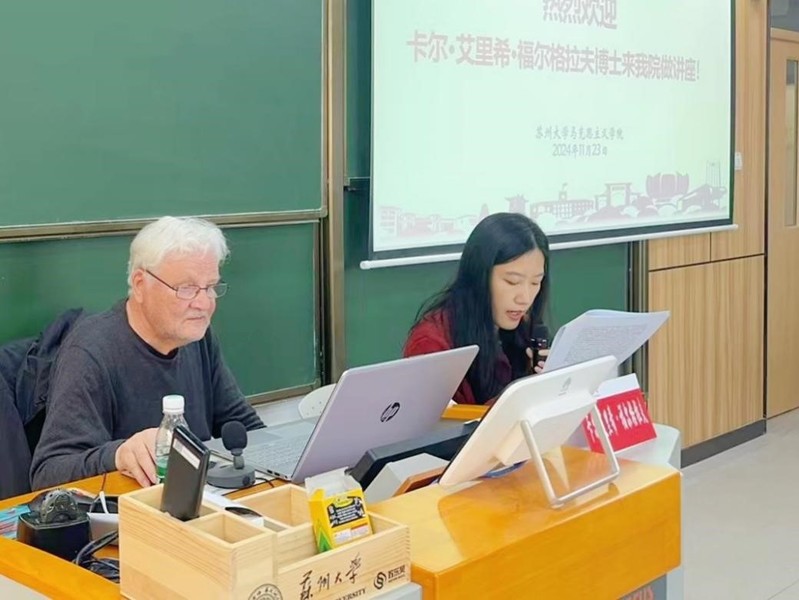 为稳步推进开放办学,拓宽师生学术视野,创新马克思主义理论课程教学思路,2024年11月23日下午,探花 邀请德国著名马克思恩格斯研究专家、MEGA编辑和《资本论》研究重要学者卡尔·艾里希·福尔格拉夫博士在天赐庄校区博远楼301教室作“恩格斯不莱梅时期(1838—1841年)思想研究”专题讲座。本次讲座由中央党史和文献研究院姜颖、刘佳提供学术翻译支持,探花 教学科研办公室主任李文娟主持,探花 教师李亚熙博士、顾梦婷博士以及探花 硕士研究生、“苏大课程-3I工程”资助课程《西方马克思主义的历史与逻辑》全校本科选修生等共同参加活动。