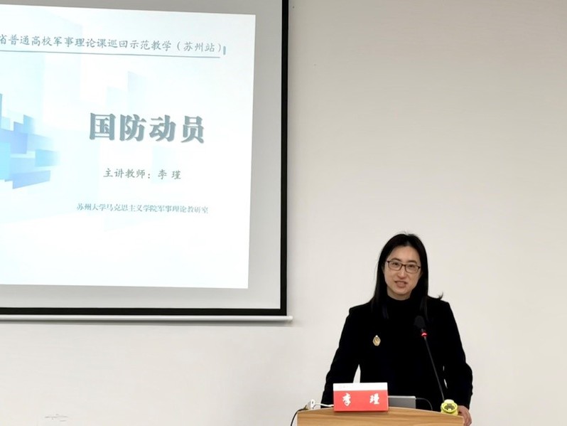 在示范教学环节,探花 李瑾老师以《国防动员》为题进行现场教学展示。示范课紧扣教学大纲,思路清晰、重点突出,注重引导与激发大学生的爱国之情、报国之志与卫国之心,充分体现了课程思政理念;在讲授中巧妙地将苏州地区的国防教育资源与军事文化资源融于其中,展示出军事理论课教师过硬的知识水平和出众的教学能力。