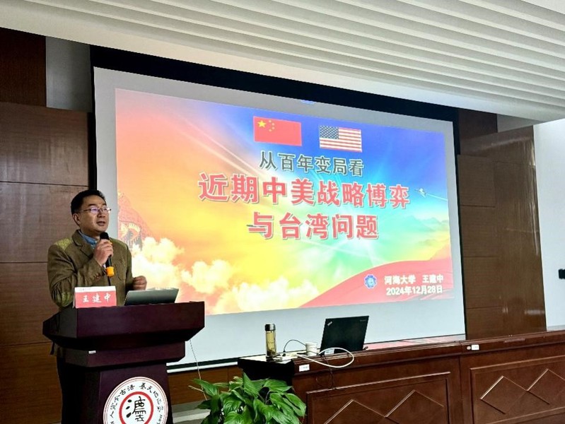 本次巡回示范教学活动以专题讲座、示范教学和研讨交流的形式开展。江苏省学校国防教育和军事课教学指导委员会副秘书长、河海大学军事教研室主任王建中老师以《从百年变局看中美战略博弈和台湾问题》为题开展专题讲座。王老师通过丰富的案例和详实的数据,深入浅出地分析了当下风云变幻的国际形势以及台湾地区的最新动态,拓宽了老师们的学术视野。