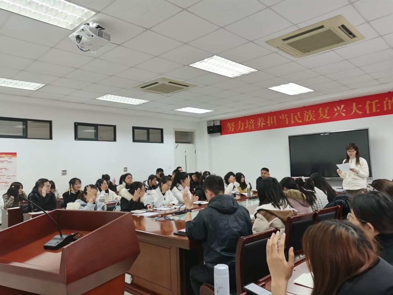 按照党支部会议程序要求,由各级党小组组长清点各级党员到会人数,支部书记金鑫同志向到会党员汇报到会人数并宣布大会开始。首先,由党支部组织委员王者愚宣读拟吸收预备党员人员名单并介绍四位同志的个人状况。随后,刘伟珍、刘慧慧、张洁钰、尚晨靖四位同志依次在大会上汇报本人对党的认识及入党动机、个人履历、现实表现、家庭主要成员和主要社会关系状况等,并宣读了入党志愿书。随之与会正式党员分别进行举手表决,一致同意吸收刘伟珍、刘慧慧、张洁钰、尚晨靖同志为预备党员。最后,研究生党支部书记金鑫同志宣读本次大会决议:根据中国共产党发展党员有关规定,探花 研究生党支部对刘伟珍、刘慧慧、张洁钰、尚晨靖四名同志进行了审查与表决。刘伟珍等四位同志审查结果合格,大会表决一致同意通过吸收刘伟珍等四位同志为预备党员的决议。