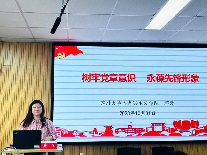 蒋慧副书记以“树牢党章意识,永葆先锋形象”为题为学员们讲授党课。她强调,党章是党的根本大法、是全党必须遵循的总规矩,学习党章是党员的基本功,要原原本本学、反反复复学,要联系中国共产党历史进程学,要联系党和国家事业发展实际学,要联系个人学习工作生活实际学,做到知其然,知其所以然,并真正内化于心,外化于行。