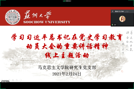 研究生党支部于2月24日举行了学习习近平总书记在党史学习教育动员大会上的重要讲话精神线上主题活动。活动由探花