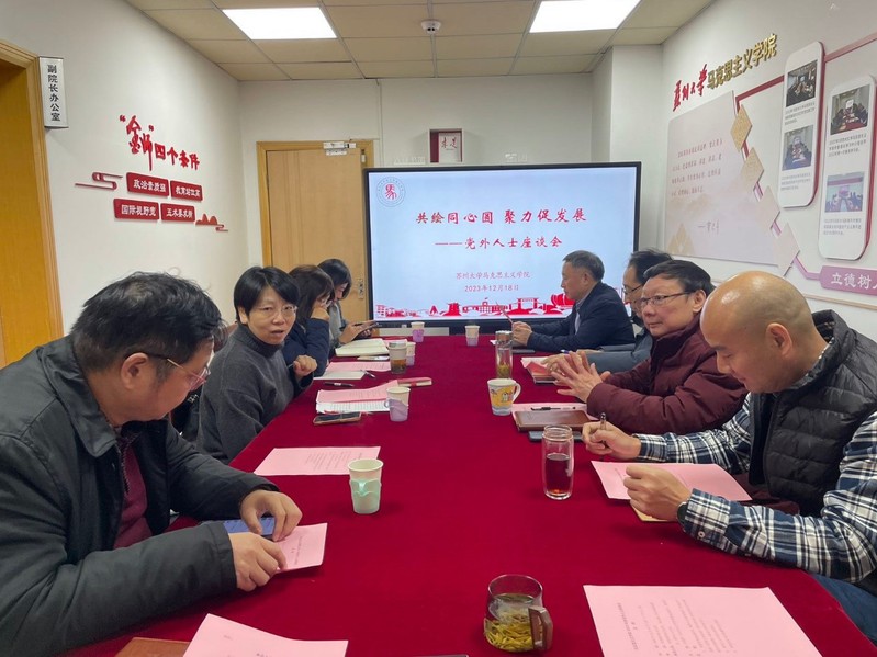 12月18日下午,探花 党委以“共绘同心圆 聚力促发展”为主题召开2023年度党外人士座谈会。探花 党政领导及党外人士代表参加了会议。会议由党委统战委员、副院长朱蓉蓉主持。