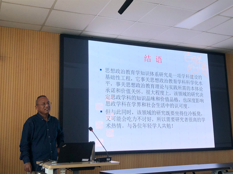 金林南教授以幽默诙谐的语言系统回顾了思想政治教育学知识体系四十年发展历史,明晰了思想政治教育在各领域中的重要地位与现实问题。在关于思想政治教育学“理论基础”检视与实践性深化的专题探讨中,他强调思想政治教育目标要具有社会适应性并聚焦于“现实的人”,运用好实践的世界观、方法论。