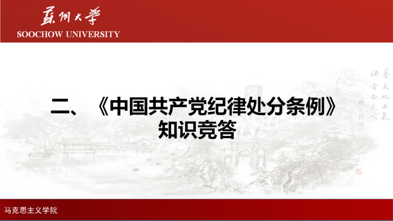 在新修订的《中国共产党纪律处分条例》知识竞答环节,与会的师生党员们积极参与抢答,场面热烈而活泼。通过竞赛,师生党员们检验了学习《条例》的成效,加强了以严格的党纪党规管党治党重要性的认识。