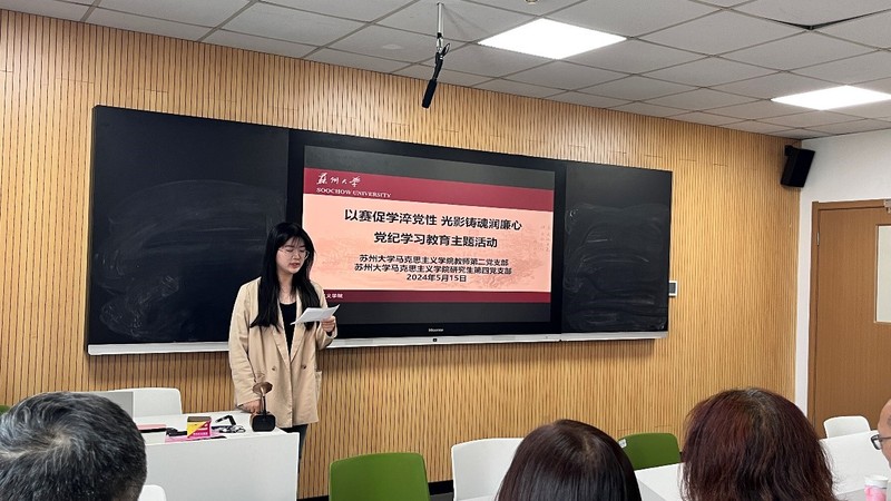 与会师生党员围绕党纪主题警示教育片和新修订的《中国共产党纪律处分条例》展开了热烈的交流和讨论。教师第二党支部王慧莹老师、程立老师和研究生第四党支部梅芳晴同学、潘亦纯同学代表本支部分别发言,结合学习和工作实际分享党纪学习的心得和体会,表示要提高自身党性修养,守住党纪的“底线”。