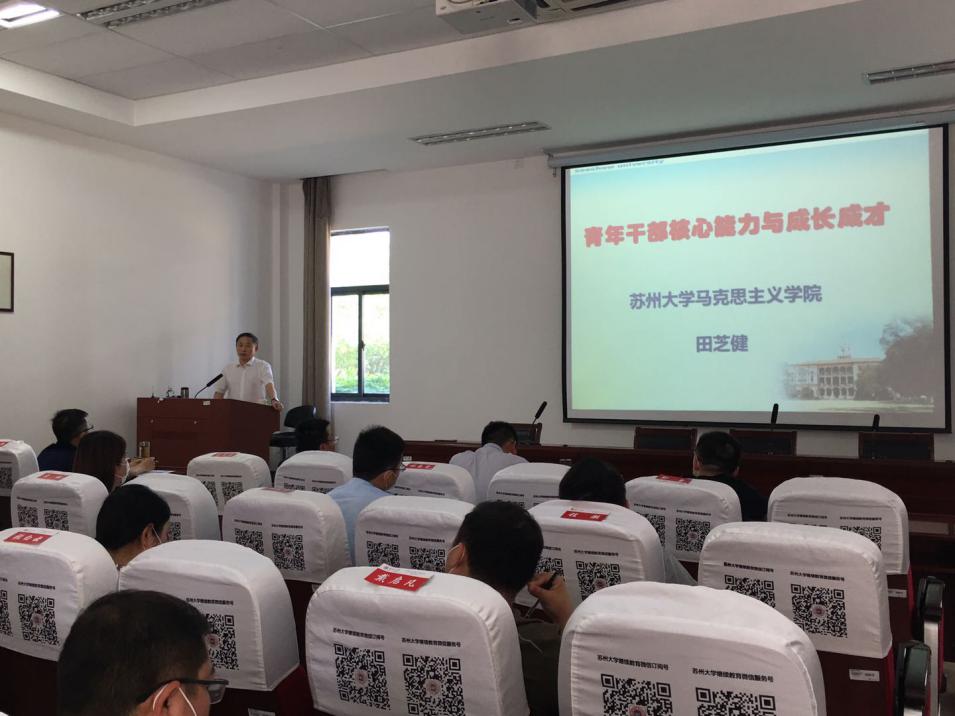 2020年6月1日,沭阳县委组织部刘方卫副部长和干训科张杰科长带领53名沭阳基层年度评选优秀的青年干部来到苏州进行综合能力提升学习,探花 田芝健院长和茆汉成副院长与刘部长就本次培训和后续的合作进行了沟通交流。6月2日上午,为期六天的沭阳县年轻干部示范培训班在探花 培训中心举行。
