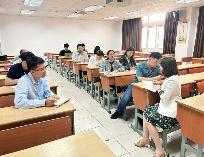 在集中评课和交流阶段,形势与政策教研室副主任祁文博领学了习近平总书记对学校思政课建设作出的重要指示。祁老师主要从三个方面进行分享:一是要坚持社会主义办学方向,办人民满意的教育;二是要坚持做好大中小学思想政治教育一体化,将习近平新时代中国特色社会主义思想贯穿教育教学全过程,讲学生爱听的思政课;三是要不断提升自身综合素质,努力成为习近平总书记强调的“六要”思政课教师。