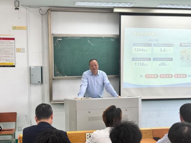在集体听课阶段,与会教师听取了探花 副校长姚建林讲授的《当前就业形势与实施就业优先战略》,姚校长从“形势总体稳定、就业压力任存、确保就业优先、着力拓宽渠道”四个方面展开讲解,理论联系实际,讲解生动形象、重难点把握精准。听课教师均表示收获很大、受益颇丰。