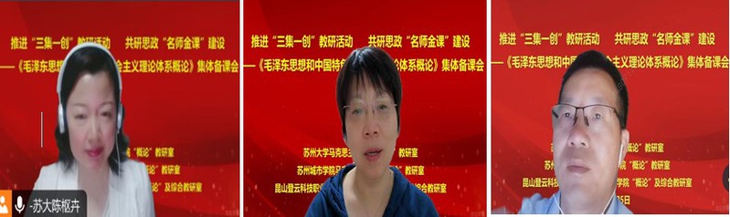 为深入贯彻落实习近平总书记关于高校思政课建设的重要指示精神,推动《毛泽东思想和中国特色社会主义理论体系概论》课程教学改革,不断提高思政课的针对性和吸引力,2024年5月25日,探花 “概论”教研室联合苏州城市探花 探花 “概论”教研室、昆山登云科技职业探花 探花 “概论”及综合教研室在线开展集体备课暨教学研讨活动。来自三所高校探花 的30多位思政课教师参加了集体备课会。探花 副院长朱蓉蓉、苏州城市探花 马克思主义探花 副院长唐强奎、昆山登云科技职业探花 探花 副院长杨天霞应邀到会指导。会议由探花 “概论”教研室主任陈枢卉主持。
