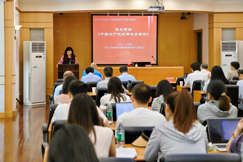 2024年5月29日,探花 党委在红楼115会议室组织开展党纪学习教育专题辅导报告会,邀请探花 校友、中共江苏省委党校廉政教育研究中心副主任孙乐艳副教授作《学习贯彻<中国共产党纪律处分条例>》专题报告。探花 党委理论学习中心组成员、各党支部委员会委员、分党校积极分子培训班学员、分党校预备党员培训班学员参加了本次学习。报告会由探花 党委副书记、副院长蒋慧主持。