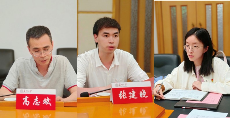 在交流发言中,教师第四党支部纪检委员高志斌从对着《条例》逐条学、推进师资专题学、结合教学渗透学和共建考察互动学四个方面总结了支部开展党纪学习教育的经验做法。思想政治教育系师生联合党支部纪检委员张建晓分享了前期支委先学、师生共学、开展专题研究的做法以及后期系列活动的开展计划。研究生第二党支部纪检委员吴雅婷就支部将党纪学习教育融入日常和融入主题党日活动的情况进行了交流。