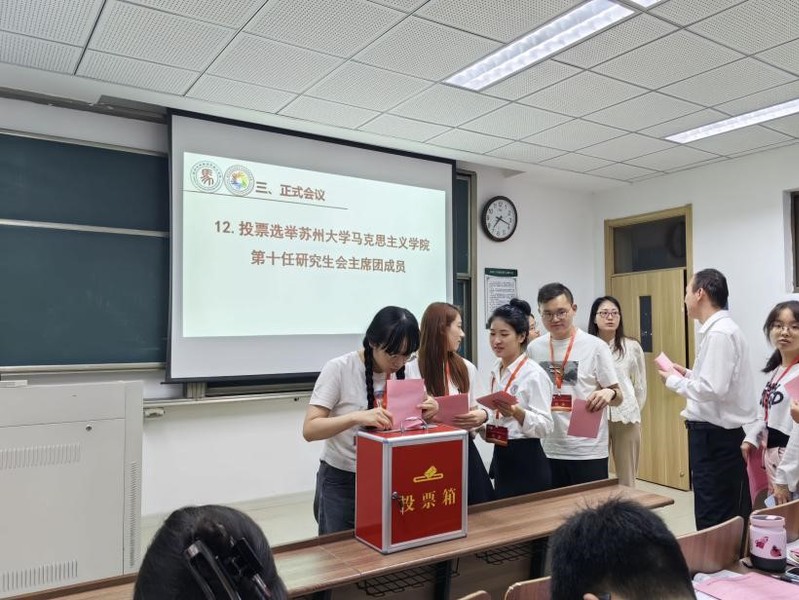 在选举环节,研究生会主席团候选人、研究生会委员会委员候选人上台进行竞选演说。现场代表以无记名投票方式差额选举产生了第十任研究生会主席团和第十届研究生会委员会。